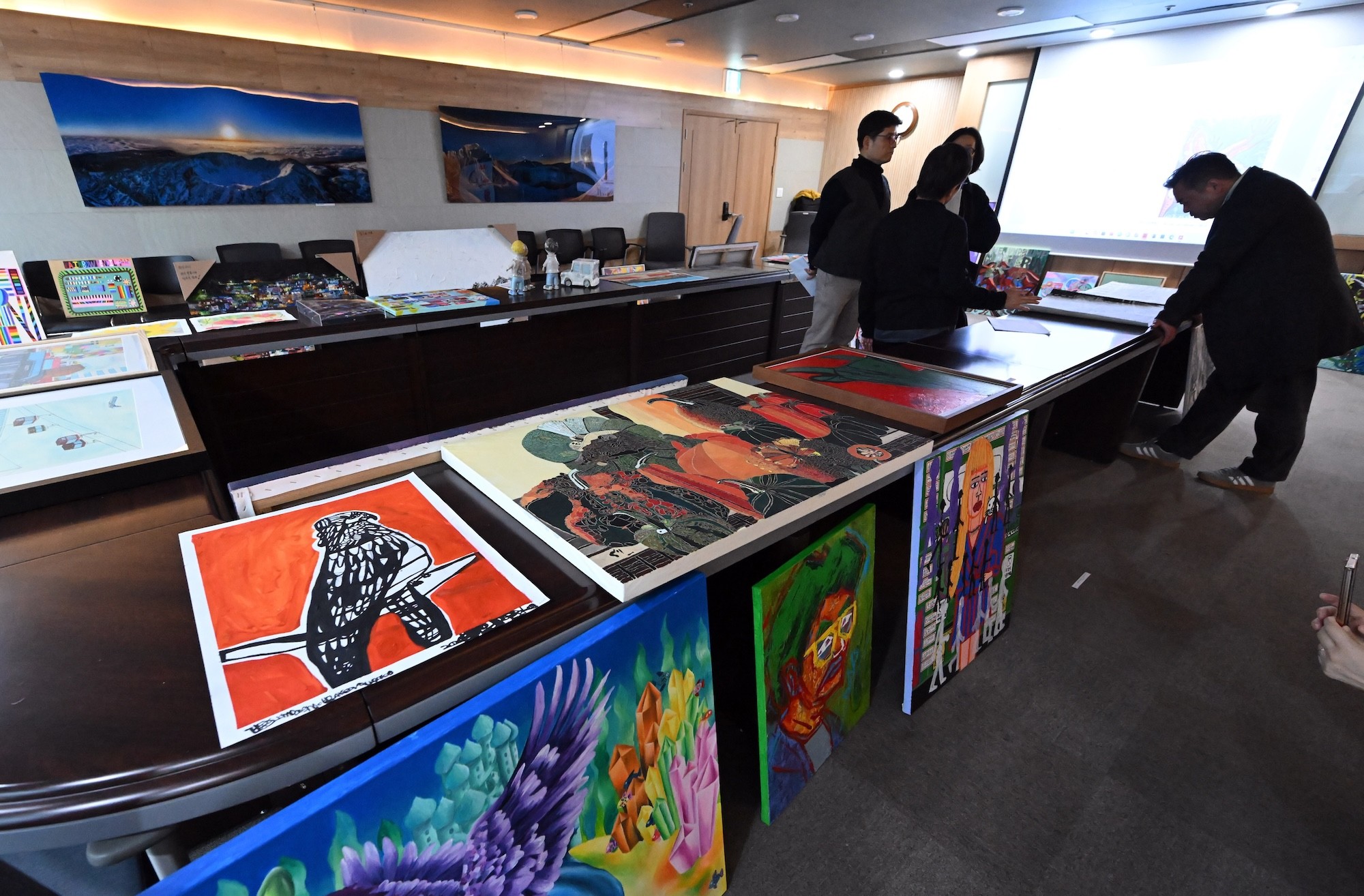 1차 포트폴리오 심의를 거쳐 23점의 실물 작품을 보면서 심의가 진행되었다. 실제 작품을 보니 완성도와 작가의 개성을 분명하게 느낄 수 있었다. 이미지로만 보고 놓칠 수 있는 많은 부분이 보완되어 작품 선정 과정에서 이견을 많이 줄일 수 있었다.