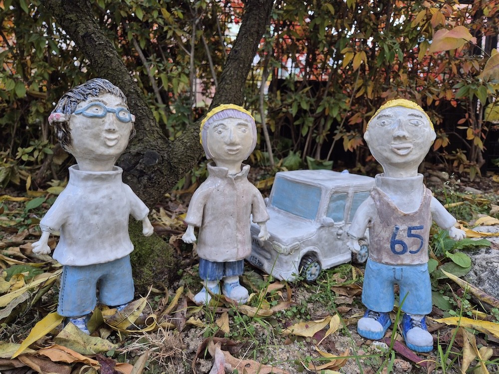 산화소성, 조합토, 고온용 세라믹 물감, 반매트유약, 자동차:17×23×13㎝, 인형: 12×25㎝, 2025