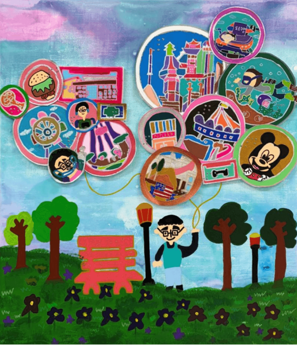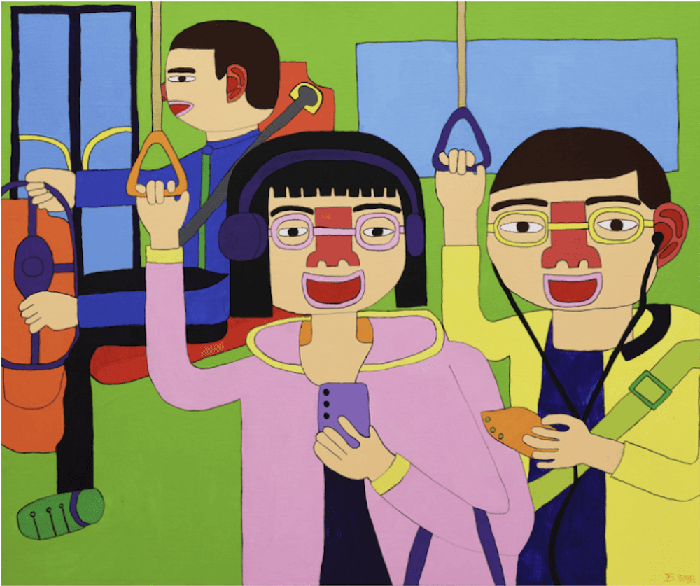 친구들과 놀기를 좋아하는 작가는 그런 교유의 순간을 화폭에 담는다. 이를테면 어느 날 버스에서 초등학교 시절 친구들을 만났을 때 기뻤던 기억을 소재로 삼는다. 야구 경기 관람, 마라톤, 캠핑 등 친구들과 함께해 행복했던 일상의 장면들을 시각적으로 기록하는 것이다. 요즘에는 여자 친구들을 그린다. 실제로 여친이 없지만 그런 소망을 담았다. 수상작 〈여자친구들과 신나는 드라이브〉도 여자 친구들과 드라이브 가는 상상을 그렸다 도자기 작품은 먼저 그린 회화를 입체로 번안한 것이다.