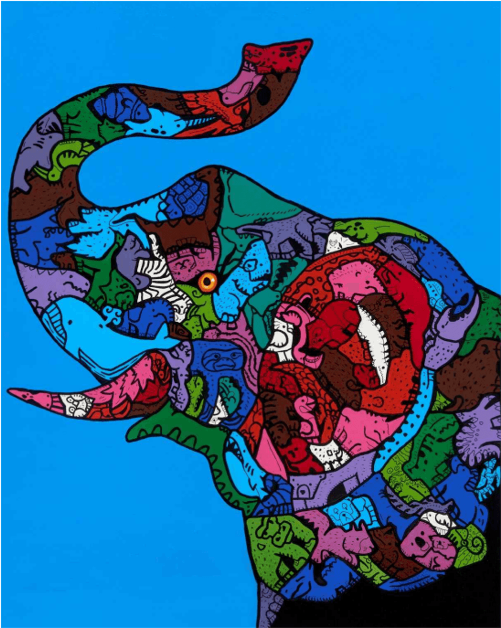 동물원을 즐겨 찾는 조태성은 동물을 주요 소재로 삼아 그림을 그린다. 그는 특이하게도 호랑이, 사자, 코뿔소 등 위엄과 힘을 지닌 동물의 왕들 형상 안에 작은 동물들을 정교하게 그려 넣는다. 이런 표현 방식은 마치 퍼즐을 맞추는 것처럼 재미를 준다. 나아가 시각적 재미를 넘어 생태계가 강인함과 부드러움, 거대함과 섬세함이 공존하는 힘과 균형의 생존 현장이라는 묵직한 메시지를 던진다. 작가는 “나는 그림을 그릴 때 단순한 형상을 넘어 그 안에 담긴 생명의 본질을 탐구한다”고 말한다.