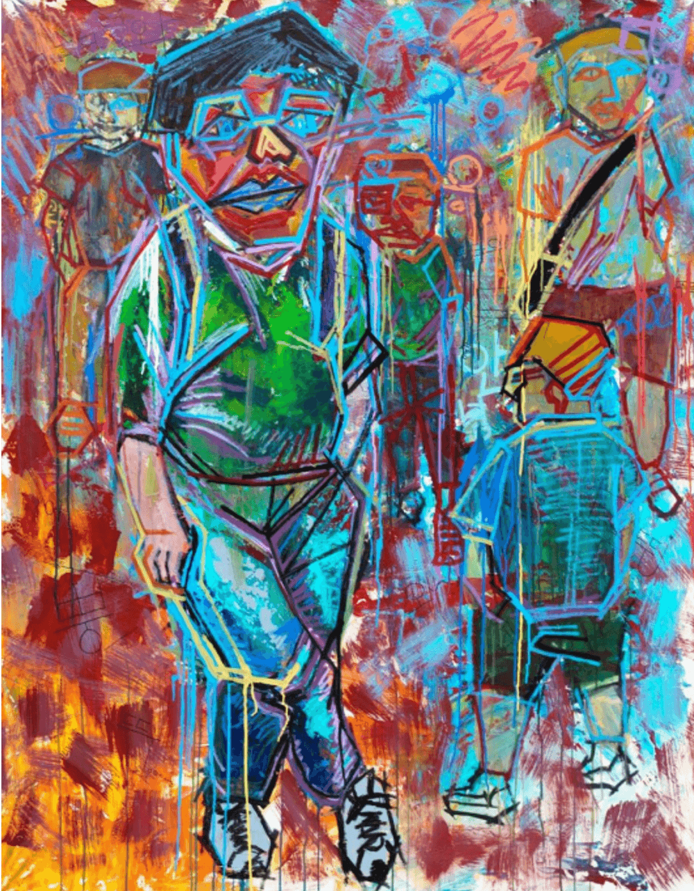 청소년 시절 왕따를 당한 적 있는 정장우는 사람에게서 직접적인 위로를 받지 못했다. 그럼에도 사람들이 함께 살아가며 움직이는 기운에서 위로를 얻었다. 개인적으로 힘들었던 시기에도 그 생명력에 기대 일어설 수 있었다. 생명이 지닌 불완전함과 흔들림, 그러면서도 다시 피어나는 의지와 힘에 주목하는데, 이는 색의 폭발, 선의 떨림, 겹겹의 물감층으로 표출된다. 생명의 상징 선인장을 주로 그리던 그는 ‘미국의 고흐’ 바스키야 전시를 본 걸 계기로 인물화로 전환했다. 생동감 넘치는 색채와 역동적인 선으로 표현한 주변 인물 그림이 바스키야를 연상시킨다.
